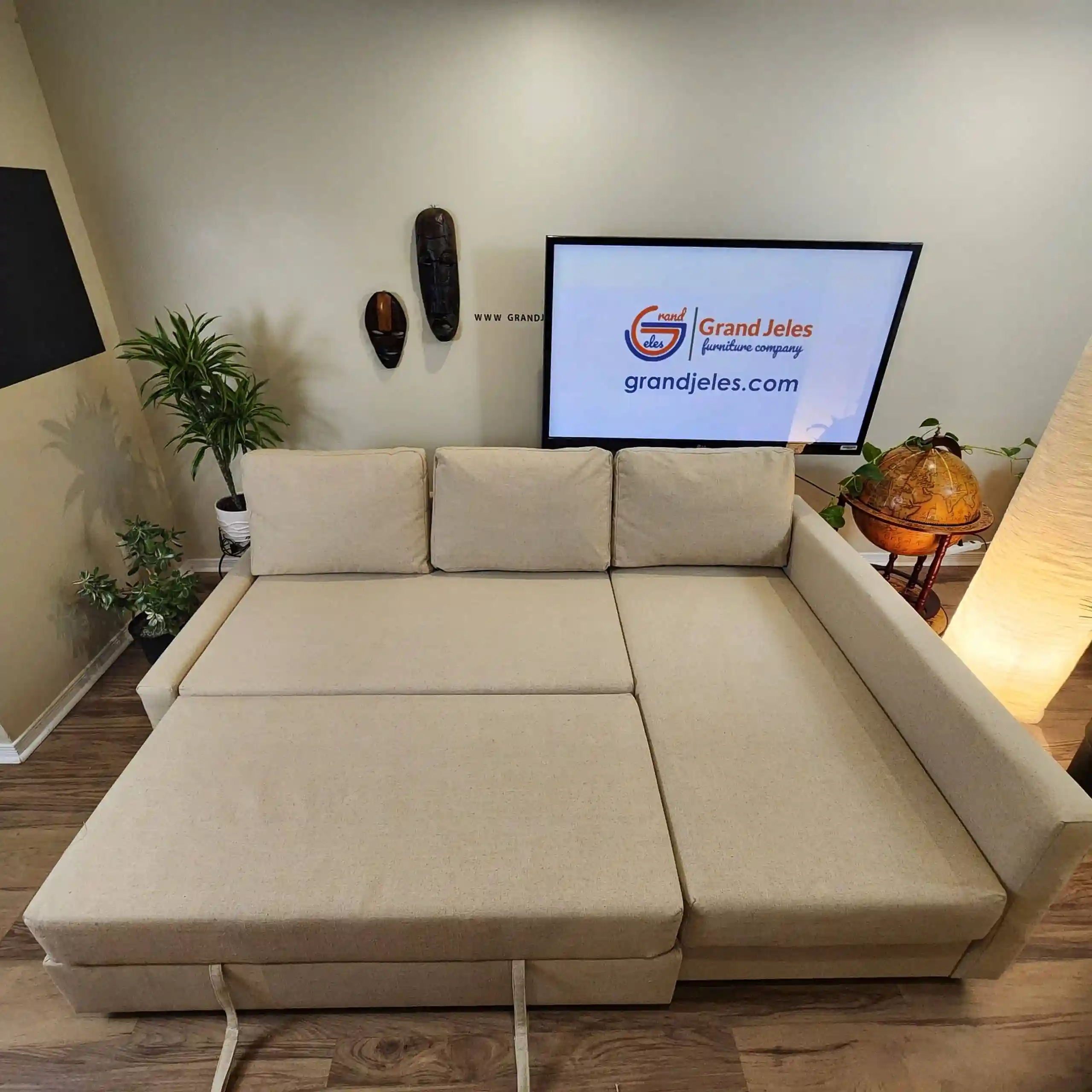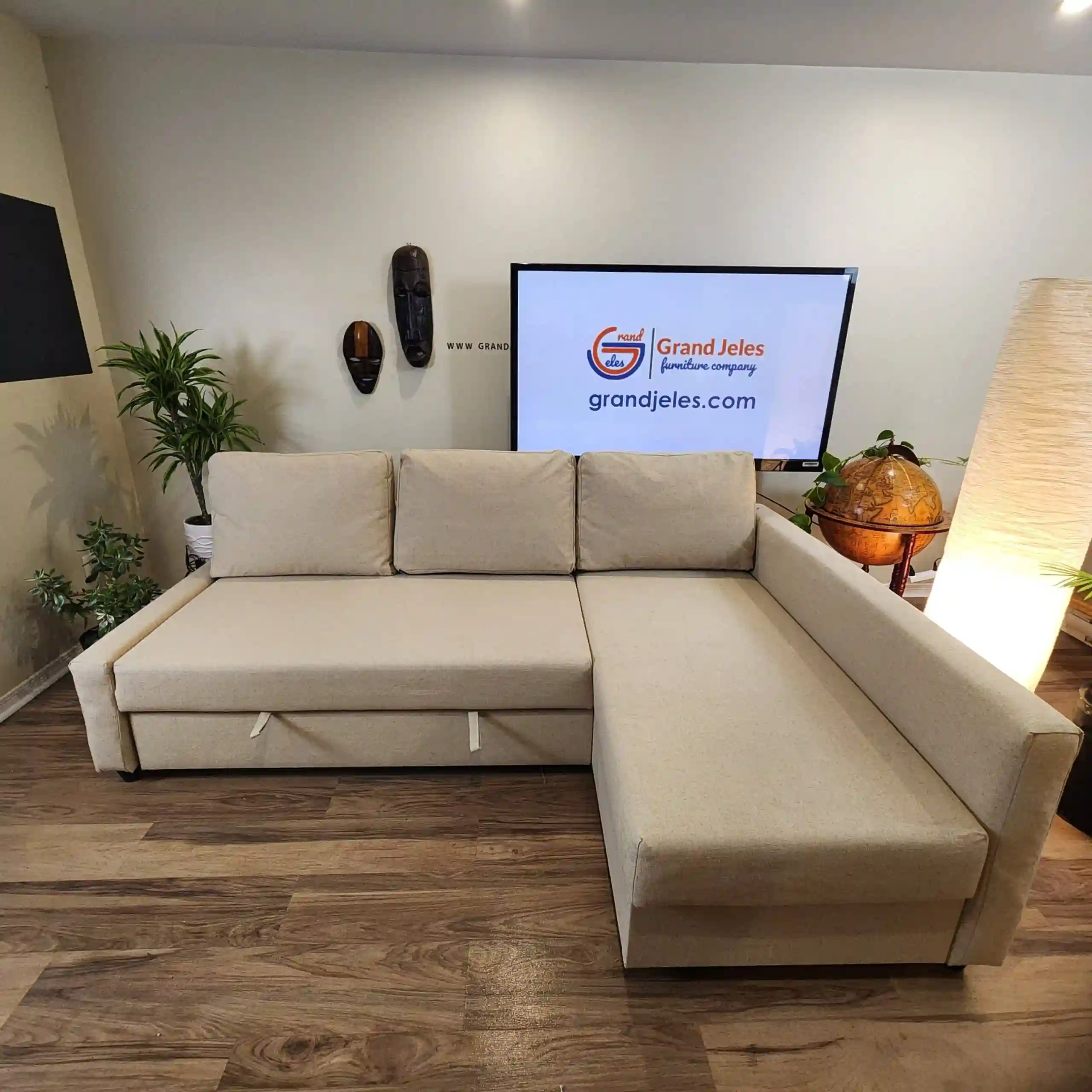 Looking for a beige sofa bed that combines comfort, smart storage, and quick delivery in Toronto? The renovated beige sleeper sofa from Grand Jeles offers everything you need: modern design, durable materials, and functional features — all in one convertible sofa bed.