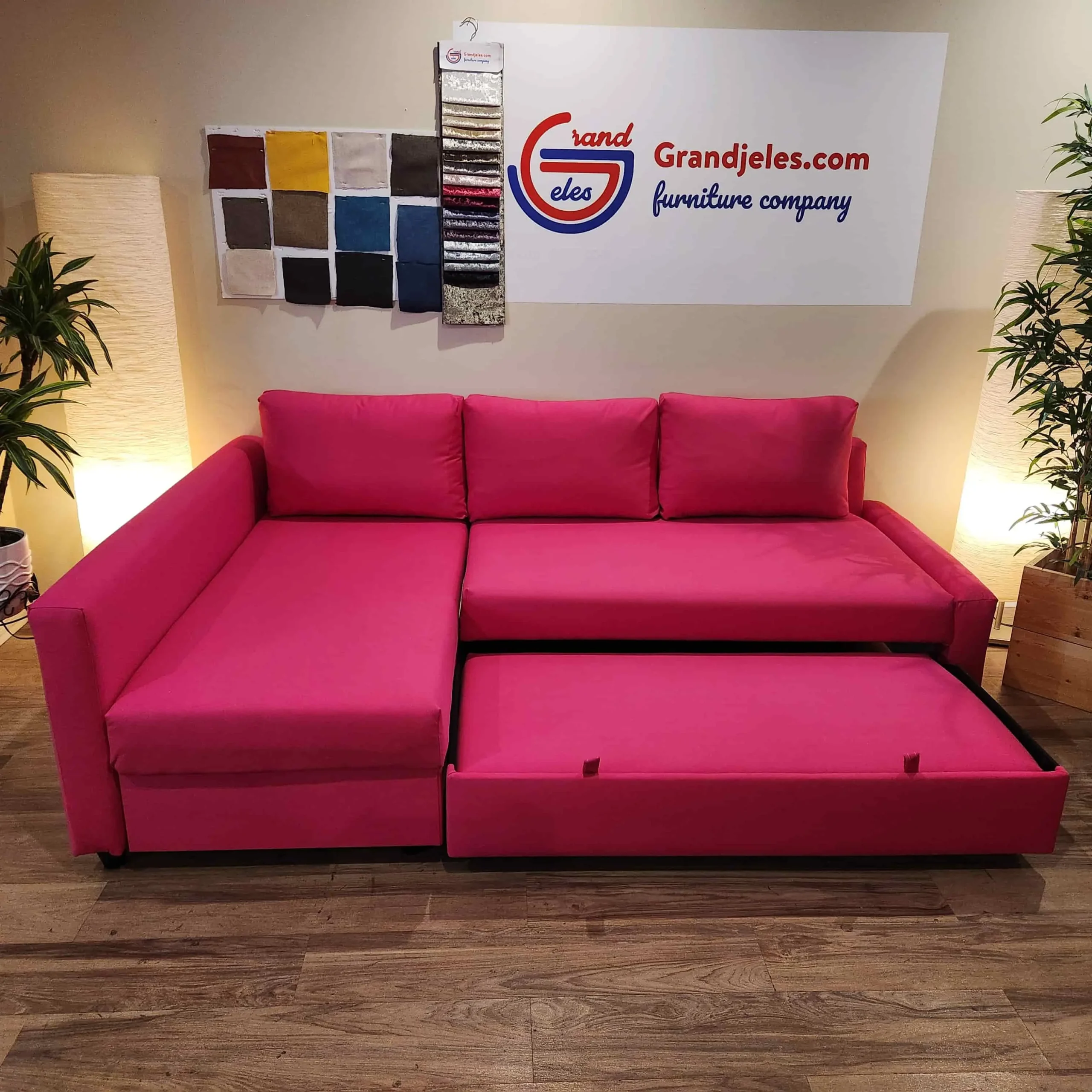 If you’re looking for a convertible sofa bed, comfortable, and durable, the Friheten rose sofa bed renovated by Grand Jeles is the ideal choice. With fast delivery, professional installation, and endless customization for colors and fabrics, it offers a superior quality solution at a competitive price.